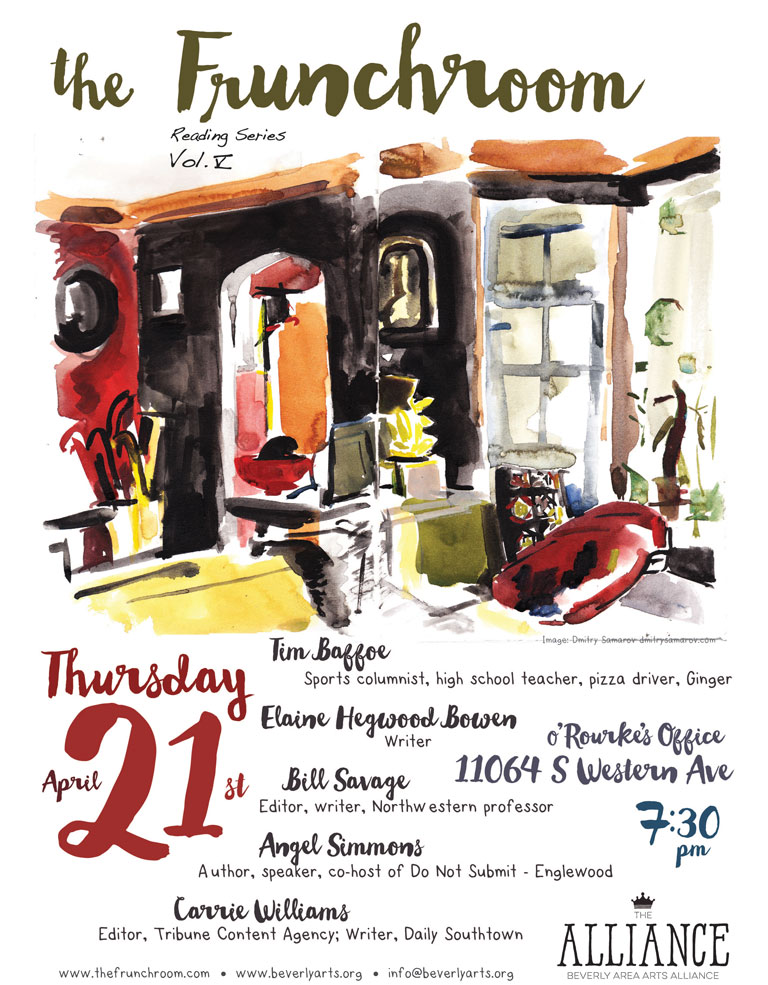 Is it that spring has finally arrived? Is it our lineup of talented readers? Perhaps it’s because it’s our first anniversary show? Whatever the reason there’s a hum in the air about tonight’s Frunchroom.